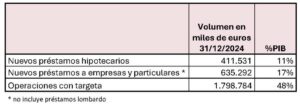 Durante este periodo, se han formalizado 769 nuevas hipotecas por un volumen total de 412 millones de euros, y se han concedido préstamos a empresas y particulares por 635 millones de euros. Paralelamente, el volumen de pagos con tarjeta ha alcanzado los 1.798 millones de euros, un 7% más que el año anterior, representando el 48% del PIB.